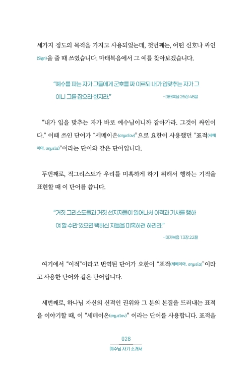 수년전부터 한국교회에서 “그리스도 중심의 설교”가 언급되며 설교되 고 있습니다. 단순히 매 설교마다 예수님을 등장시키는 것이 그리스도 중 심의 설교가 아니라는 것을 박형용 목사님의 글에서 그리스도 중심의 메시지라는 것이 무엇인지를 알게 되었습니다. 예수님의 메시지가 어떤 배경에서 나왔으며 어떤 흐름과 이야기, 관계성을 담고 있는지를 입체적으로 설명하며 “예수님 자기소개서”를 완성하고 있음에 감탄할 수밖에 없었습니다. 이 책은 목회 현장에서 치열하게 말씀을 연구하는 목회자분들에게 추천하고 싶습니다. 그리고 예수님을 더욱 사랑하고 싶은 마음을 갖고있는 성도님들에게 강력하게 추천하고 싶습니다. 이 책을 덮는 마지막 페이지에서 분명 예수님께서 나의 주님이심에 감격하게 될 것입니다.