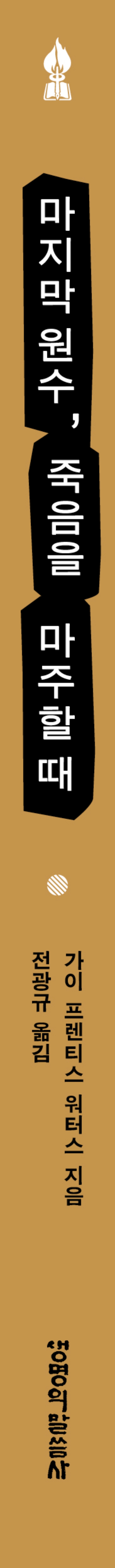 이 책에서 가이 프렌티스 워터스는 죽음과 그에 수반되는 두려움을 극복하도록 돕기 위해 부드러우면서 단단하게 우리의 손을 붙잡고 우리를 인도해 갑니다. 이 책의 열두 장은 성경적으로 풍부하고, 목회적으로 신뢰할 만하며, 영적으로 지혜로운 매우 세심한 가르침을 담고 있습니다. 『마지막 원수, 죽음을 마주할 때』는 우리의 질문에 답하는 동시에 만약 우리가 바울과 함께 “내게 사는 것이 그리스도”라고 말할 수 있다면 “죽는 것도 유익”하다고 확신할 수 있음을 우리에게 재확신시킵니다. 이 책은 이 분야에서 고전이라 할 수 있으며, 모든 가정에 비치해 둘 가치가 있습니다.