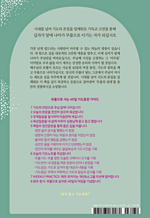 특히, 이 책은 단순히 눈으로 읽는 묵상을 넘어 독자가 직접 무릎을 꿇고