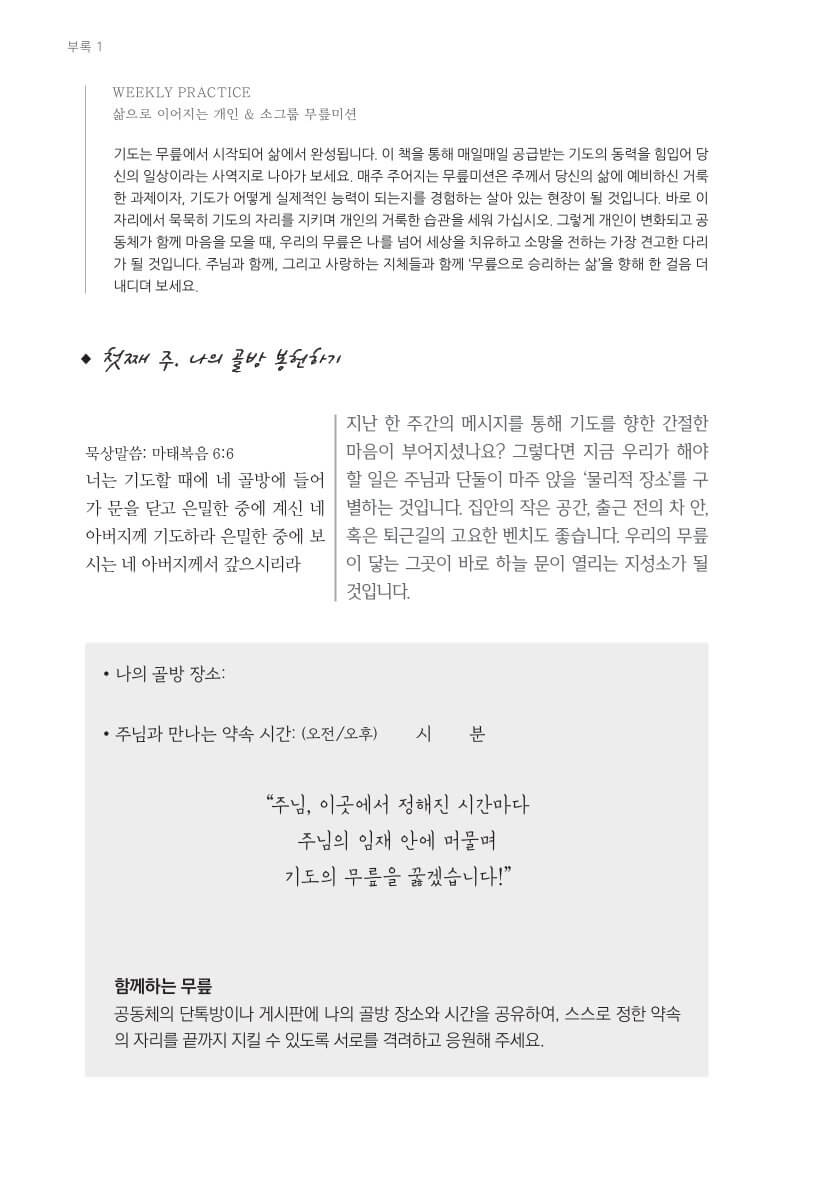 부록1 WEEKLY PRACTICE: 삶으로 이어지는 개인&공동체 무릎미션