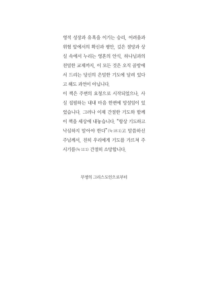 독자들은 어느새 오직 기도를 들으시는 하나님께만 시선을 고정하게 되며