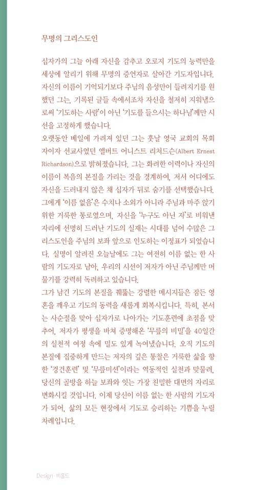 이름 없는 한 사람의 기도자로 남기를 원했던 저자의 발자취를 따라가다 보면,