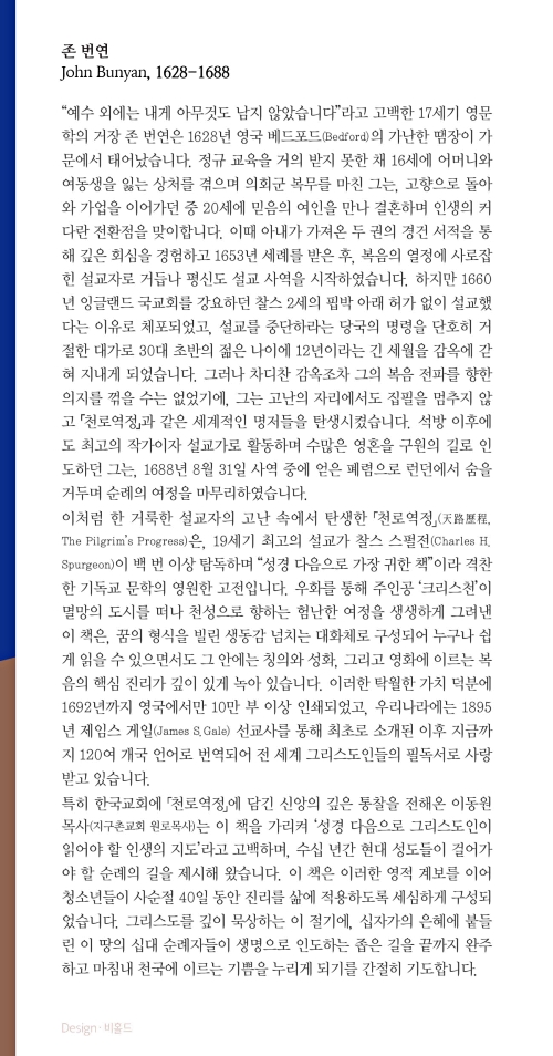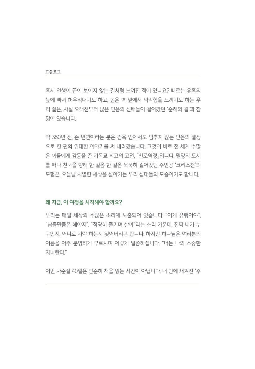 이제 여러분만의 ‘천로역정’을 시작 해 보세요. 이 지도가 가장 영광스러운 길로 여러분을 안내해 줄 것입니다. p.5