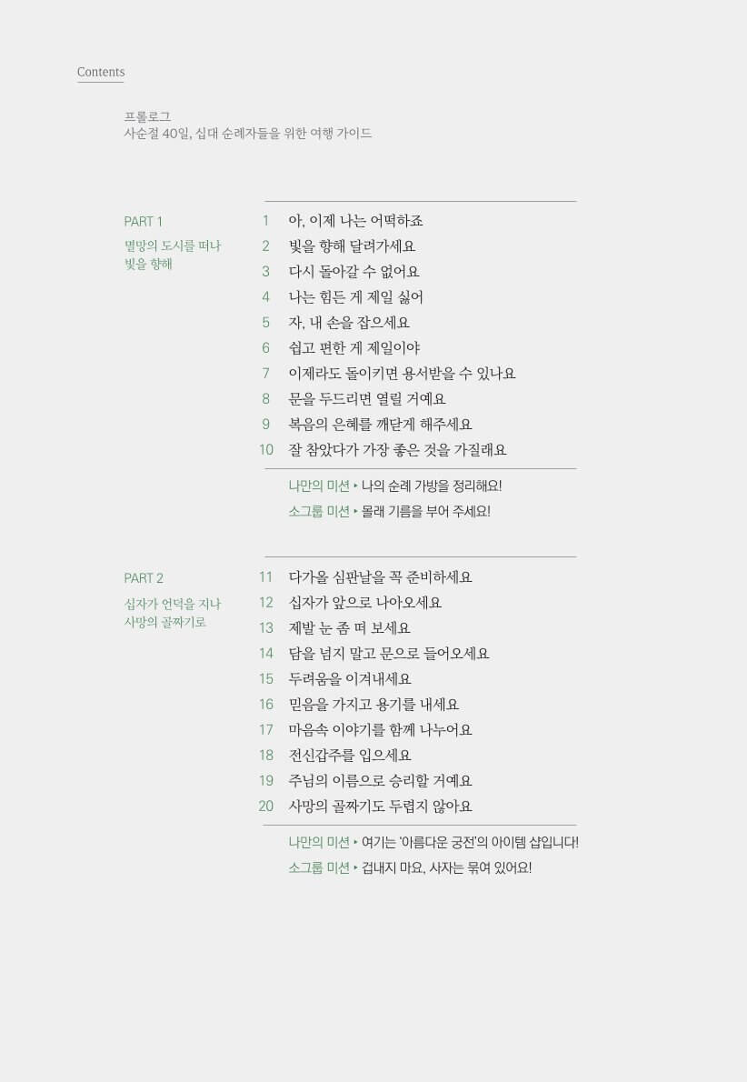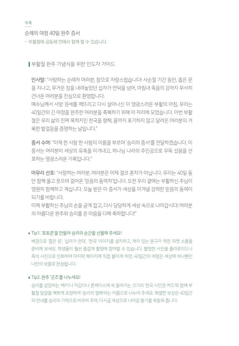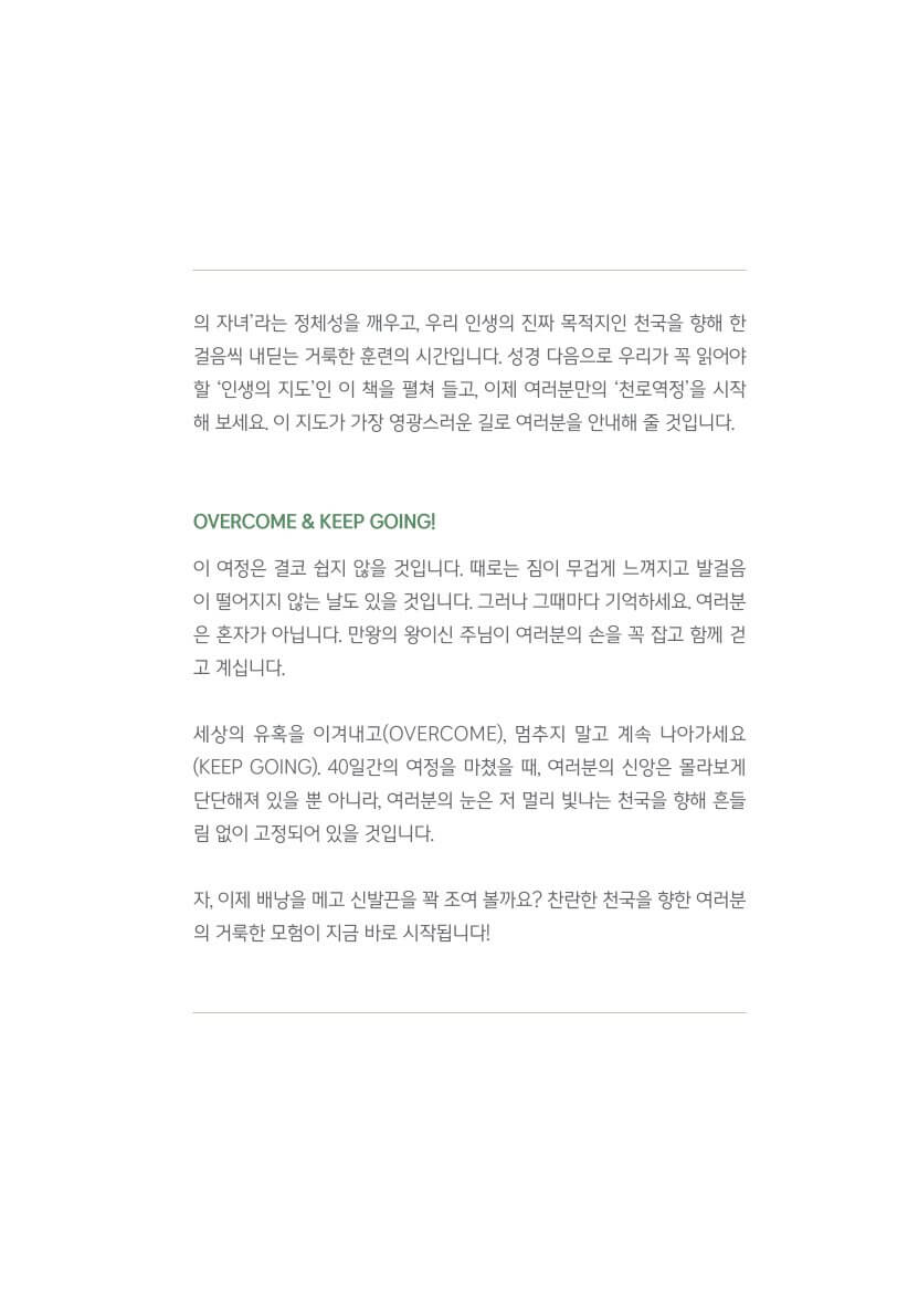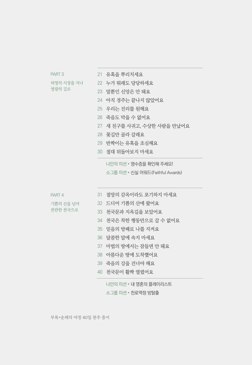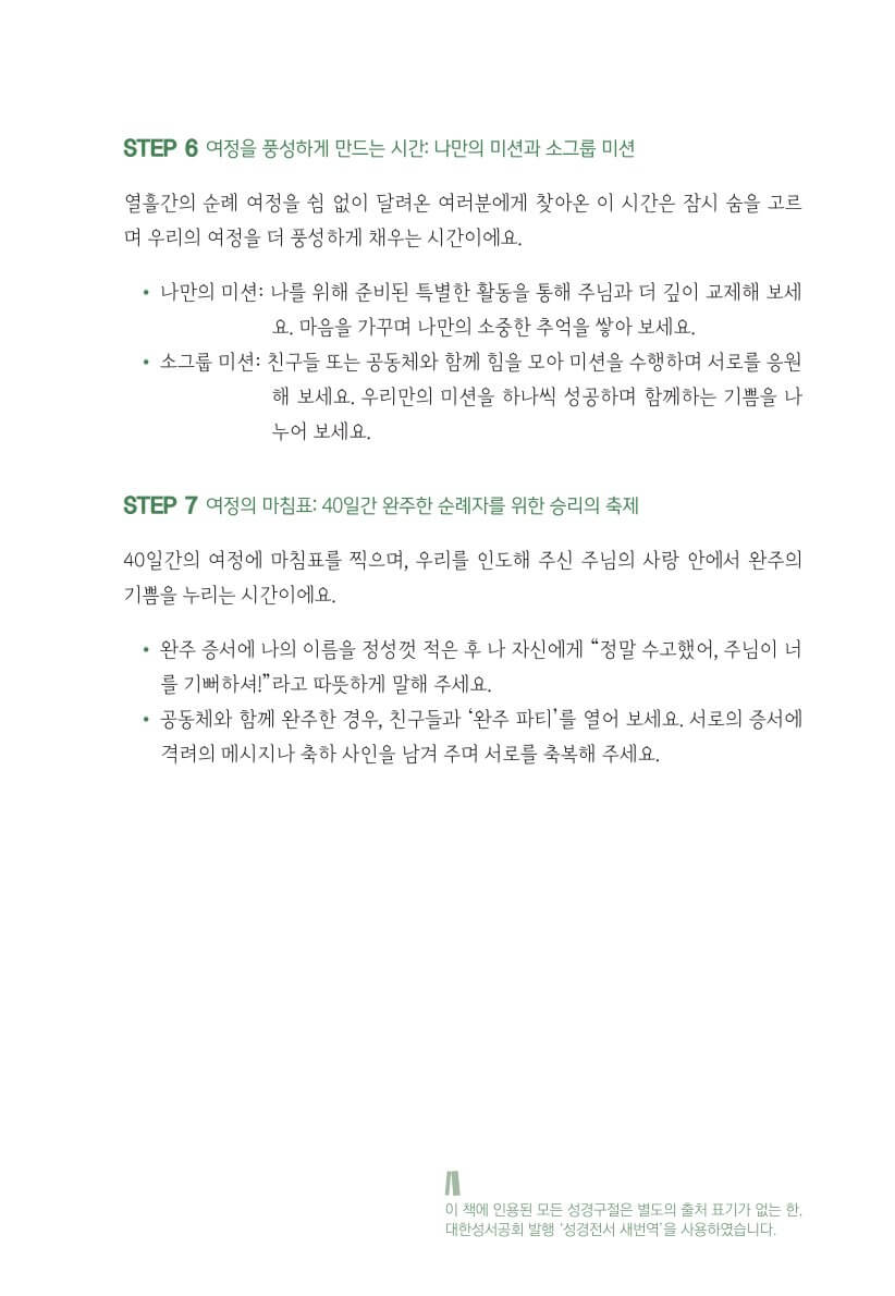 40일간의 여정은 세상에 하나뿐인 나만의 보물로 완성됩니다. p.100