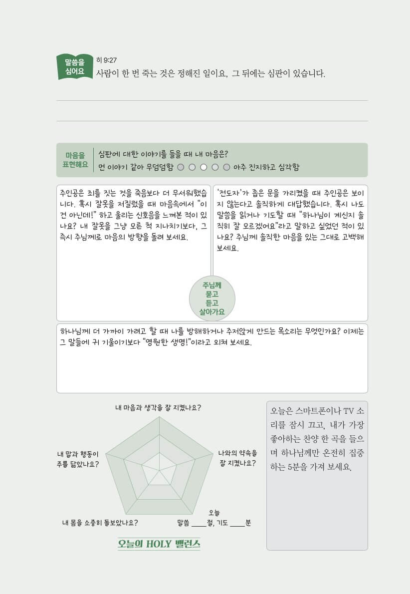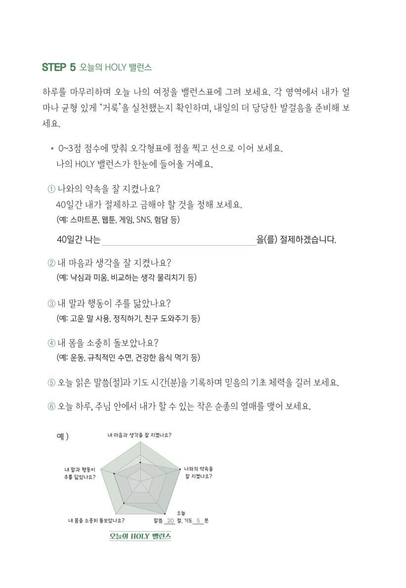 매일의 꾸준한 경건훈련으로 신앙의 기초체력을 기르는 ‘오늘의 HOLY 밸런스(Step 5)’는