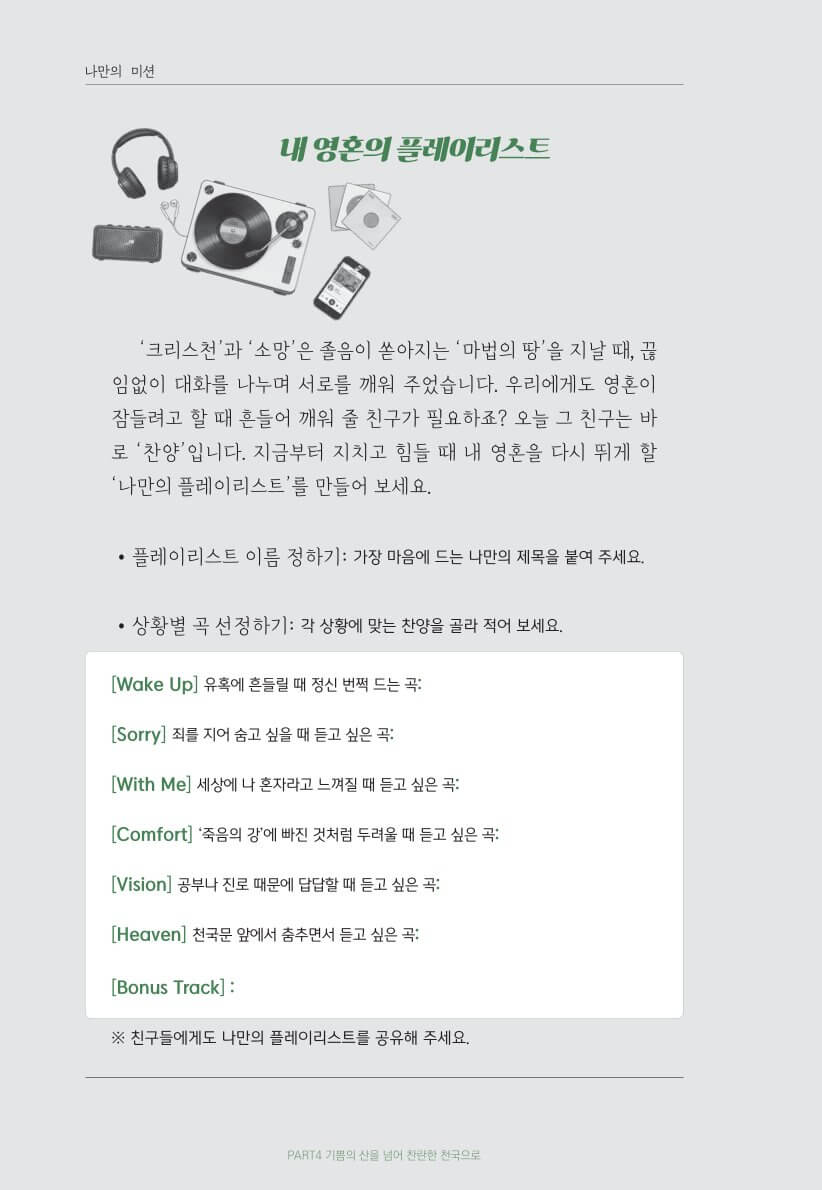 내 영혼을 다시 뛰게 할 ‘나만의 플레이리스트’를 만들어 보세요. p.98