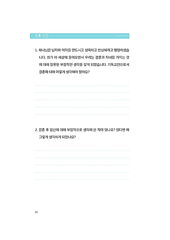 기본 요소들을 모두 포함한다. 이 책은 그런 점에서 각 요소들을 고루 갖추고 있으며 특별히 모든 교회가 청소년들의 성교육에 쉽게 접근할 수 있는