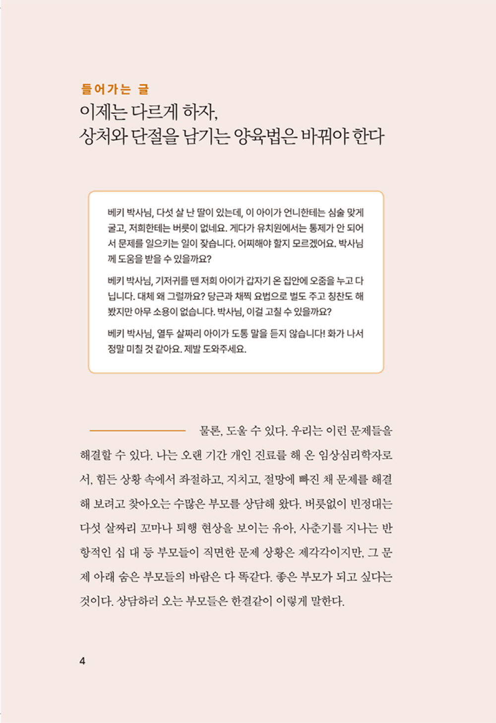 들어가는 글 이제는 다르게 하자. 상처와 단절을 남기는 양육법은 바꿔야 한다