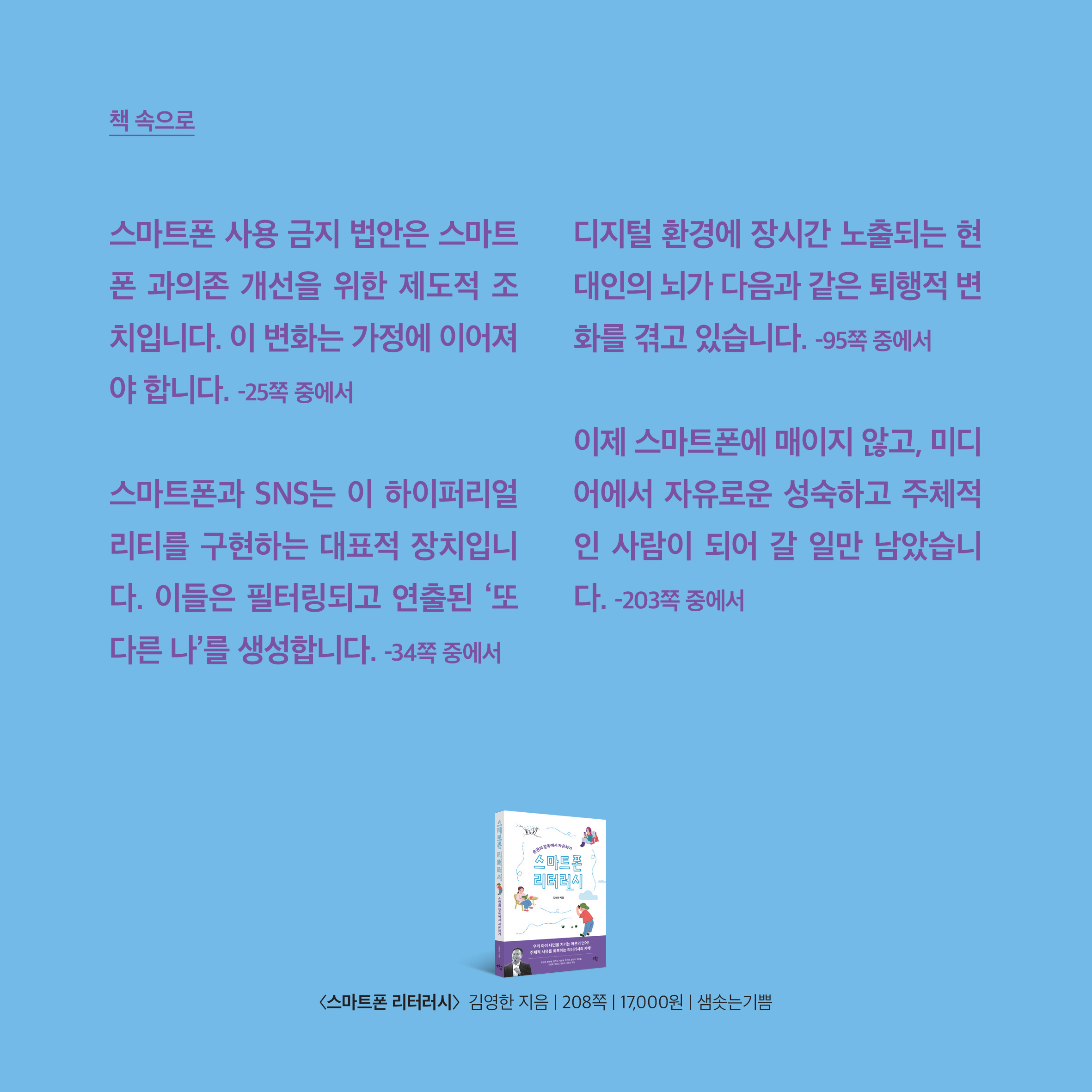 스마트폰 메타인지가 생긴다. 분명한 진단에 이어 따뜻한 처방이 담겼다는 점이 감사하다.