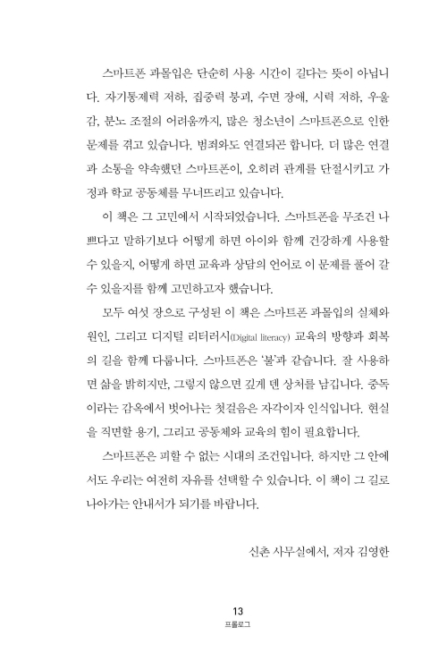 오랜 내공과 함께 고민하고 씨름한 솔루션이 담겨 있다. 중독 청소년을 건져내길 소망한다.