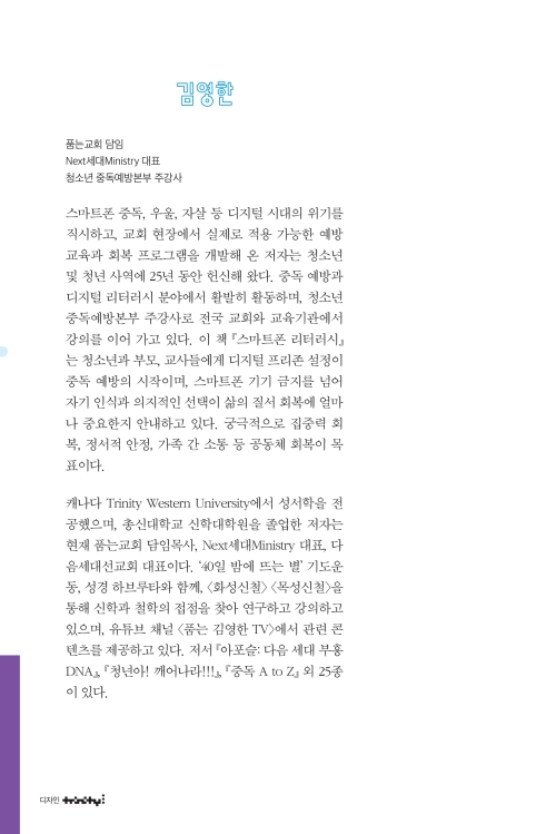 ★ 스마트폰은 활용 도구를 넘어 일상과 사고를 관통하는 존재가 되었다. 아침의 시작과 밤의 끝, 고요한 틈마저 스마트폰이 차지하며 우리는 ‘사용하는’ 주체가 아니라 ‘사용당하는’ 객체가 되어 간다. 25년간 청소년 사역에 헌신하며 중독 예방과 디지털 리터러시 교육을 실천해온 저자는, 이러한 시대적 상황을 직시하며 회복의 길을 모색한다. 스마트폰 금지 규제만으로 충분하지 않으며, 자기 인식과 의지적 선택이 삶의 질서 회복의 출발점임을 강조한다. 기술을 넘어선 인간의 자유와 성숙을 향한 항해, 그 길을 함께 걷도록 초대한다.