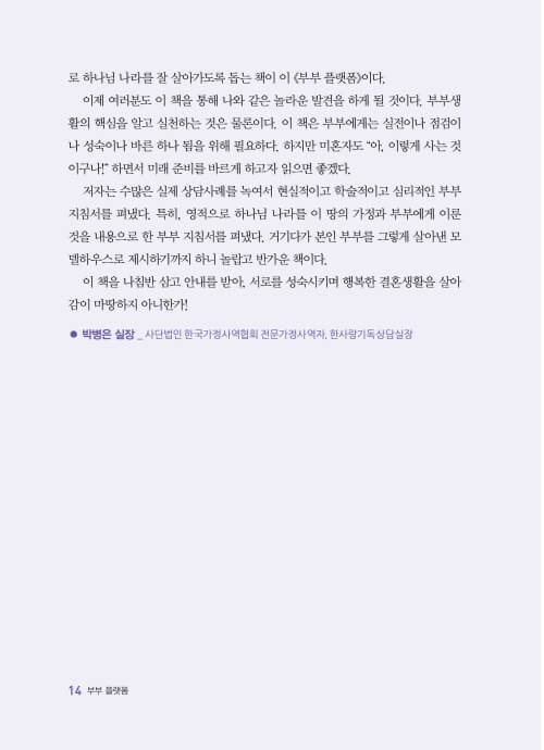• 교회에서 부부 소그룹 모임이 읽고 나누고 공부하기에 매우 유익한 책