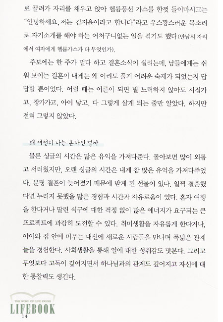 결혼을 선택하지 않은 그녀들에게 / 넌크리스천과 교제를 시작한 당신에게 / 엄마는 엄마, 나는 나 / 결혼, 아줌마가 되다