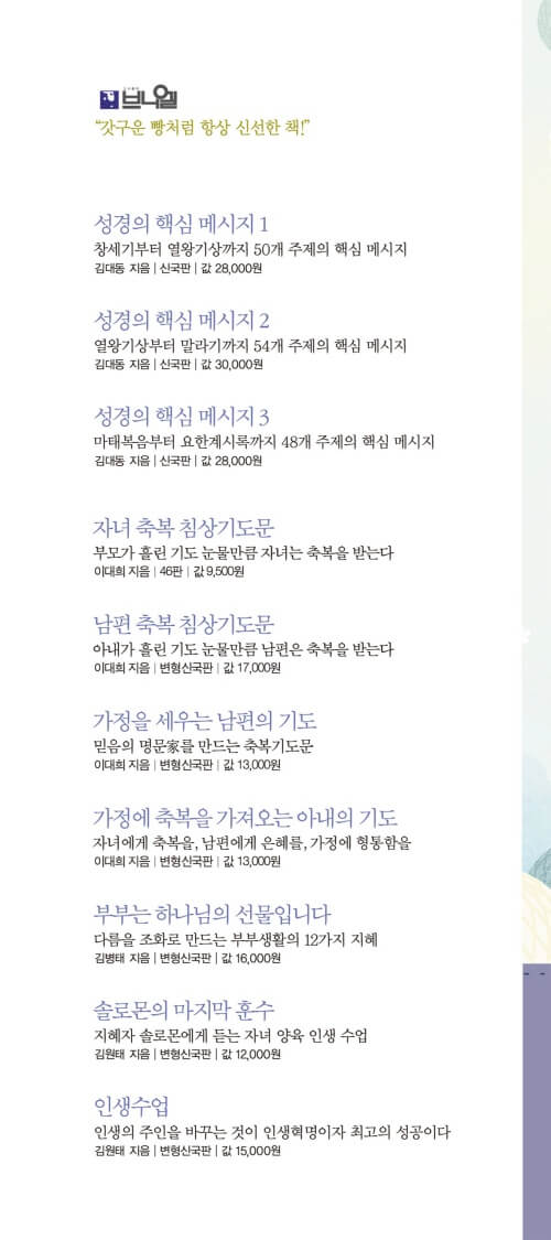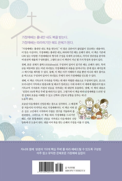 오늘날 다음세대의 신앙문제는 참으로 심각하다. 그 해결책 중 처음이자 마지막은 바로 가정예배일 것이다. 이 책은 이와 같은 깊은 고민에서 시작하여 수많은 연구를 거듭하여 출판되었다. 그러므로 이 책을 따라서 가정예배를 드리기만 해도 기존 통합세대의 신앙을 지켜내고, 다음세대의 신앙 양육에 큰 도움이 된다. 대를 이어 복을 받는 은혜의 가정을 이룰 수 있다.