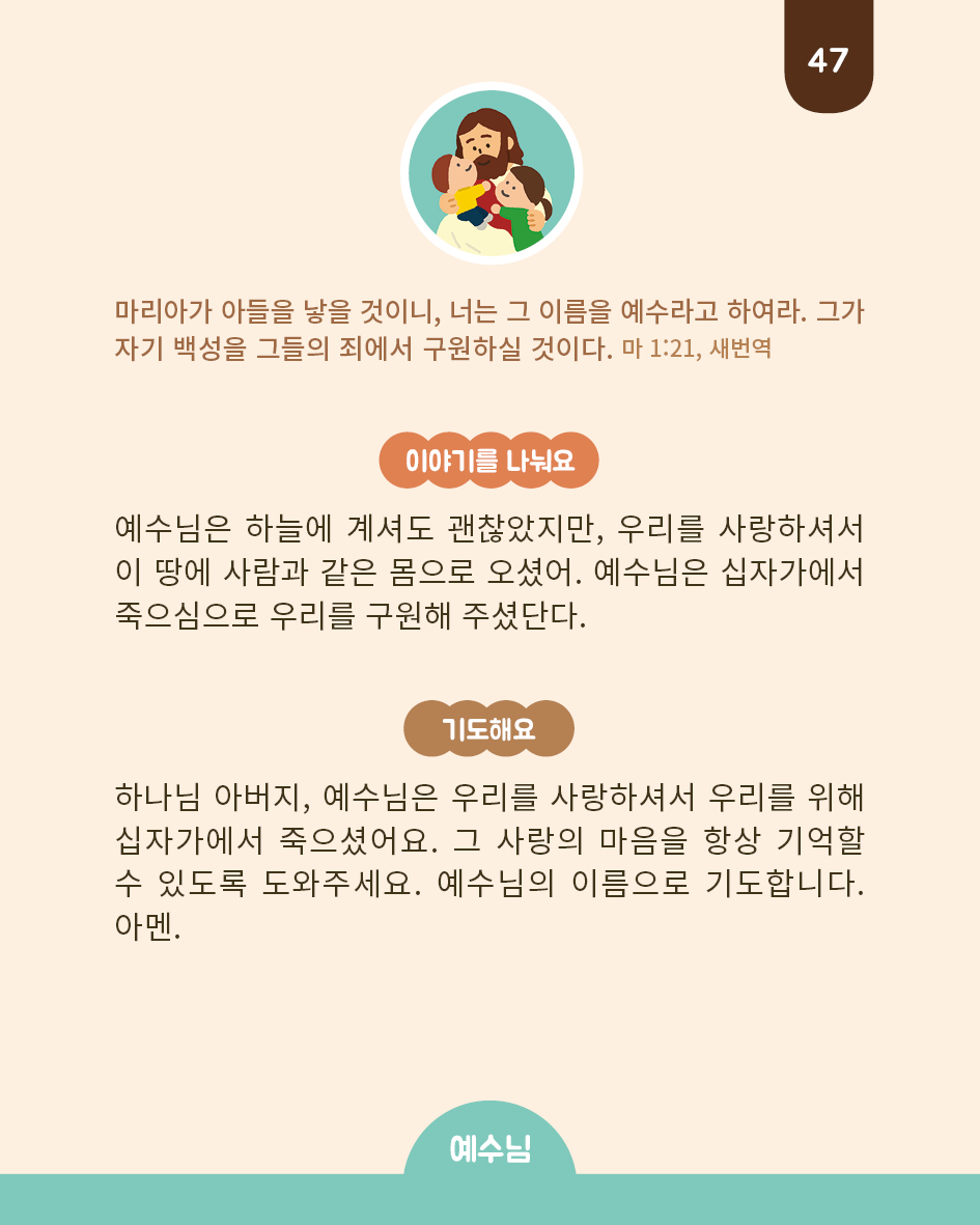 - 미취학 어린이를 위한 → 「어린이와 함께하는 그림책 가정예배」