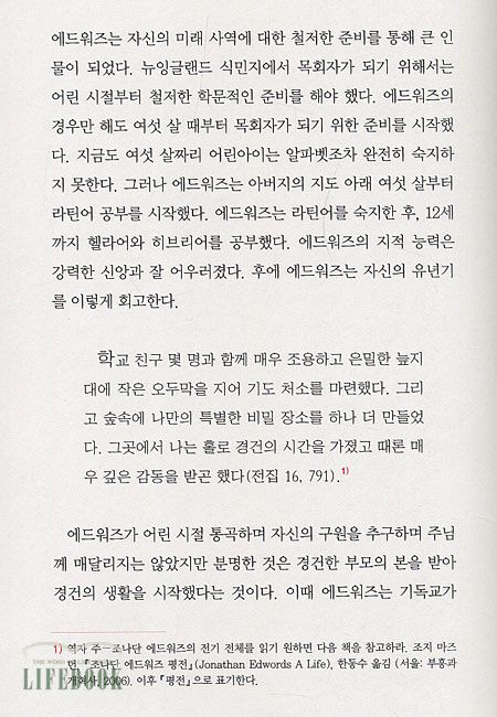 야기를 자주 듣습니다. 오늘날 정신과 마음이 온통 하나님에 대한 생각에 사로잡힌 에드워즈와 같은 저자를 만나는 일은 매우