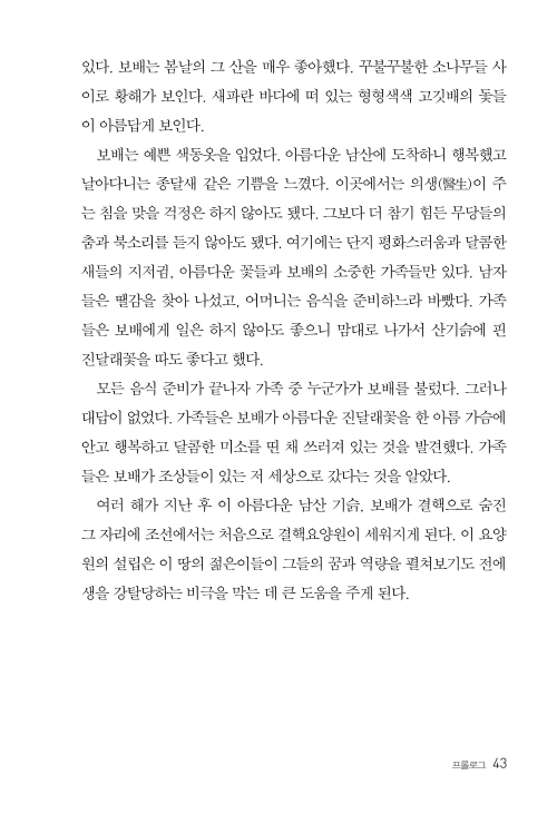한국의 사랑하는 독자들, 그리고 가족들에게 반가운 인사를 드립니다. 독자들은 이 책을 흥미진진하게 읽으실 수 있을 것입니다. 왜냐하면 이 책은 한국에서 일어났던 근세 역사의 단편들과 그밖에도 매우 흥미 있는 일들을 다루고 있기 때문입니다. … 이 책에는 한국인들의 목숨을 가장 많이 앗아간 결핵이라는 적을 상대로 싸워 이기는 이야기와 이런 과정에서 한국 최초로 설립된 결핵 요양원의 이야기도 있습니다. 이 책을 쓰면서, 사랑하는 한국에서 보낸 수많은 행복했던 날들이 기억나 즐거웠습니다. 독자들도 이 책을 즐겁게 읽어 주기 바랍니다. 이 책을 즐겁게 읽고 주위 사람들에게도 이야기해주시면 감사하겠습니다. 좋은 이야기란 서로 나누어 갖는 게 좋지 않겠습니까!