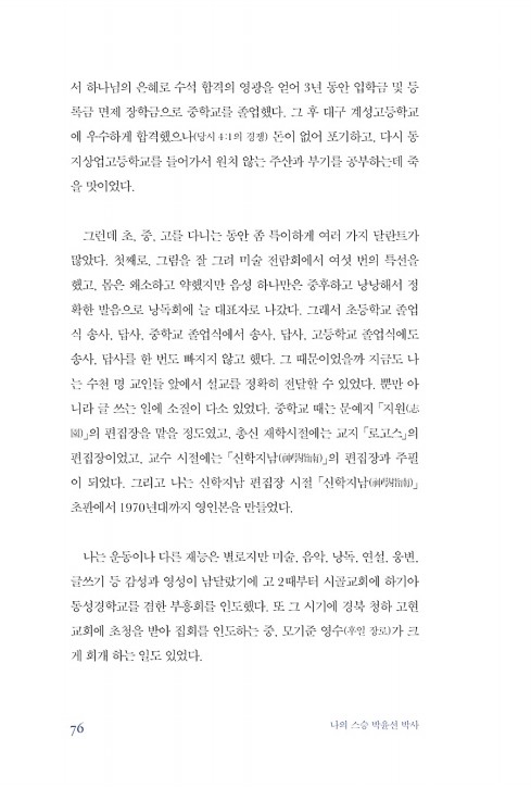 이 뜻 깊은 해에 나의 스승, 나의 멘토 박윤선 박사와 함께 했던 뒷이야기를 역사적 기록으로 남겨 한국 장로교회, 곧 개혁교회가 나아갈 방향을 제시하기 위해서 이 책을 펴내게 되었다. 그리고 필자는 2006년에 이미 賢岩 鄭聖久 博士 회고록, 『은총의 포로』를 집필한 적이 있다. 이 책은 필자와 박윤선 박사와의 얽힌 뒷이야기를 제2의 회고록으로 쓴 것이라고 봐도 좋을 듯하다.
