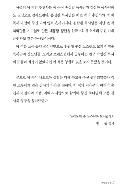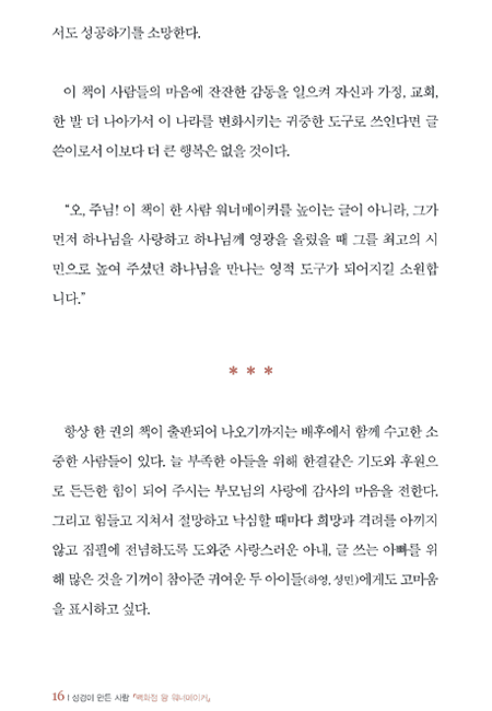 이런 귀한 책이 이제야 출판된 것이 얼마나 안타까운지 모릅니다. 좀 더 빨리 이 책을 만났더라면 이 시대가 얼마나 달라졌을까 생각해 봅니다. 이 귀한 책자가 자신과 가정, 기업을 경영하고 싶어하는, 또한 생애를 성경에 의해 인도 받고자 하는 그리스도인들 모두에게 놀라운 축복의 안내서가 될 줄로 확신하며 한국교회의 모든 성도님들에게 기쁨으로 추천합니다.