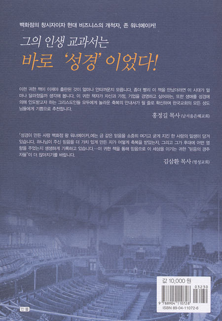 존 워너메이커는 백화점의 창시자이자 현대 비즈니스의 개척자로 그의 생애는 전설처럼, 삽화처럼 부분적으로만 알려져 있는데 본서를 통해 성경을 인생 교과서로 삼아 온전한 믿음의 삶을 살았던 그를 만날 수 있다.