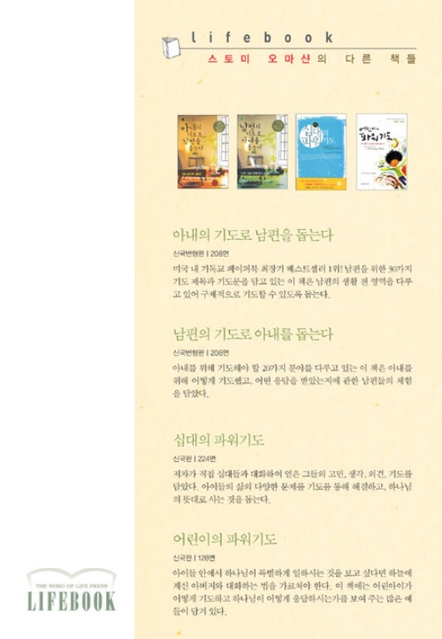 많은 기도 서적을 통해 기도의 힘과 무엇을 기도할 것인가를 알려준 스토미 오마샨은 이 책에서 성년자녀를 둔 부모가 기도해야