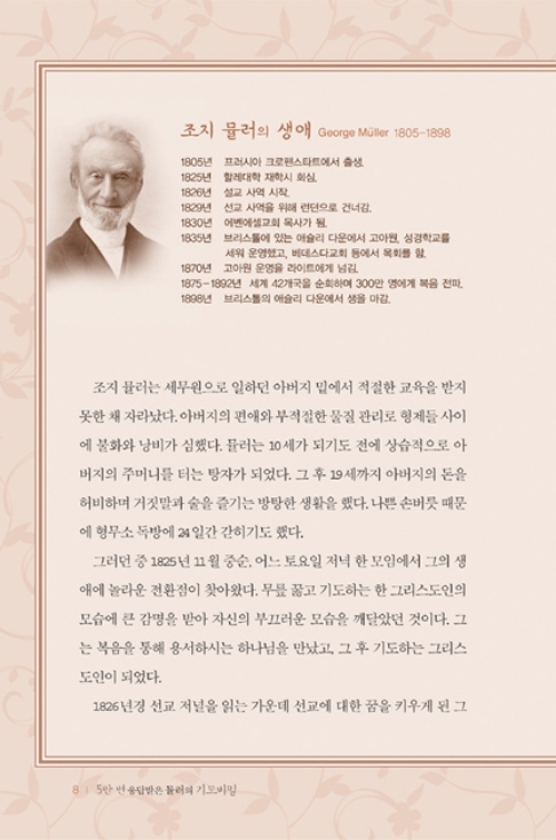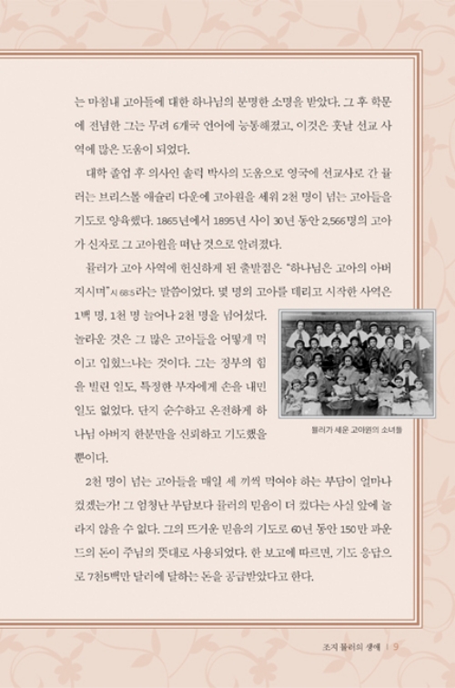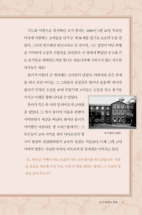 기독교 역사상 기도 응답을 많이 받기로 소문난 사람, 오직 기도로만 세계적인 고아원을 운영했던 하나님의 사람, 무려 5만 번 이상 기도 응답을 받은 하나님의 기도 용사! 바로 '조지 뮬러'이다.