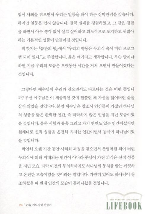 이 책 “21일 기도 습관 만들기”는 평범하고 지루해 보이지만 우리의 기도가 거룩한 습관이 되어 우리가 어떤 상황에서도