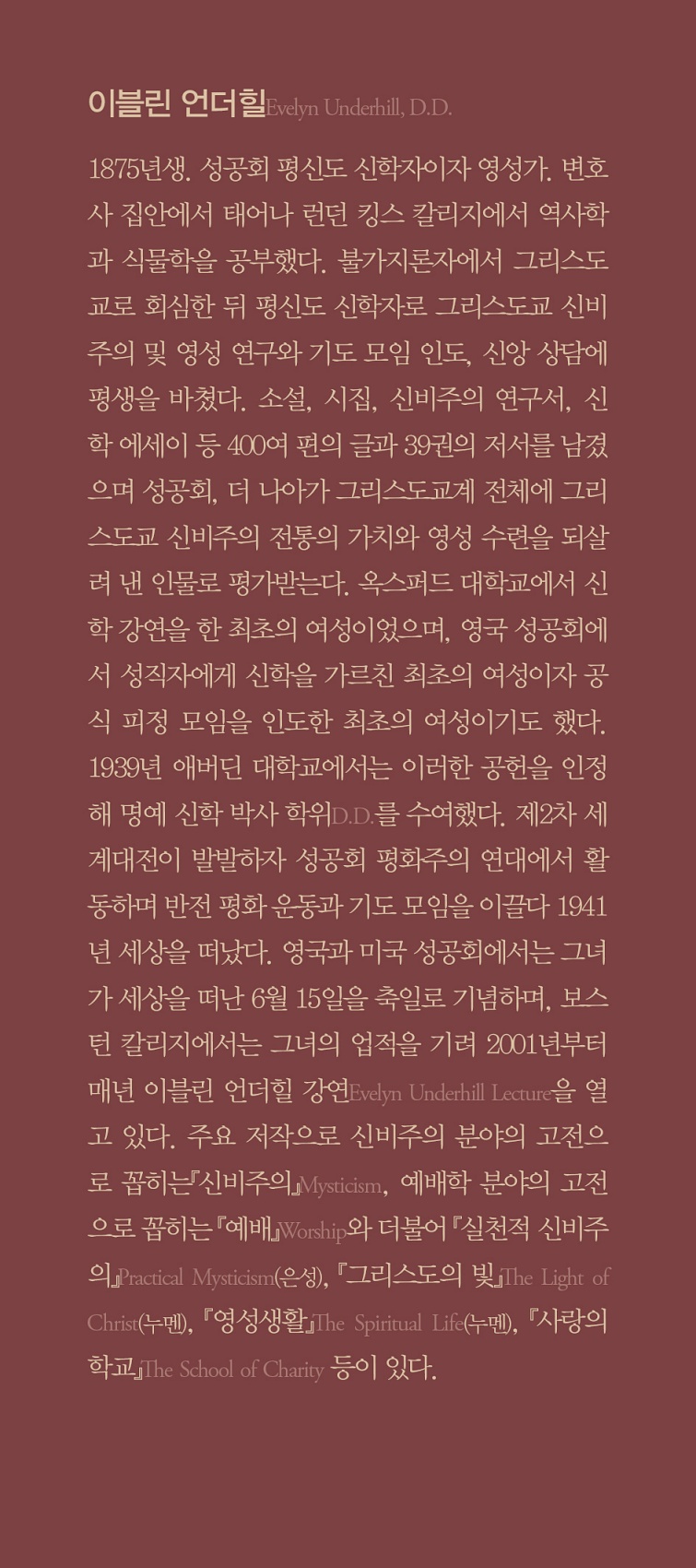 이블린 언더힐은 그리스도교 세계 전체가 공유하는 감각을 가장 명징한 언어로 표현해냈다.