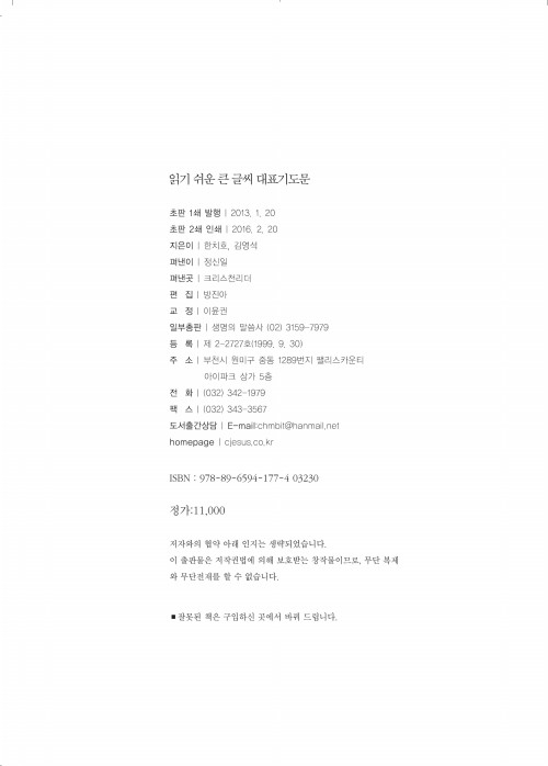 읽기 쉬운 큰 글씨 심령부흥 대표기도문