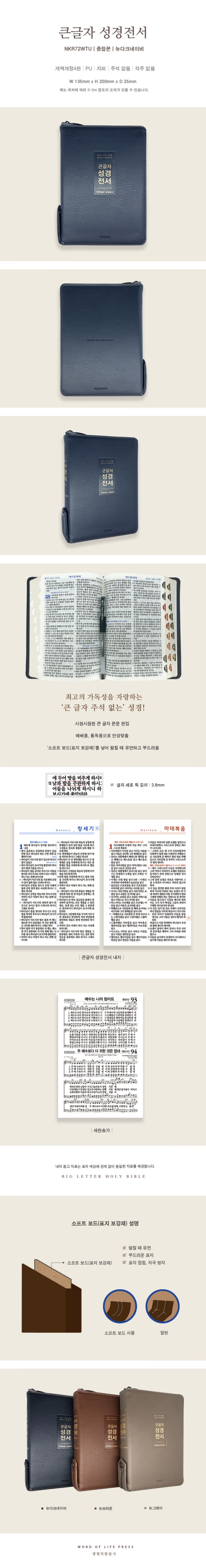 개역개정4판 큰글자 성경전서 새찬송가 - 비치용 (중합본/색인/무지퍼/PU/NKR72WTU/뉴다크네이비)