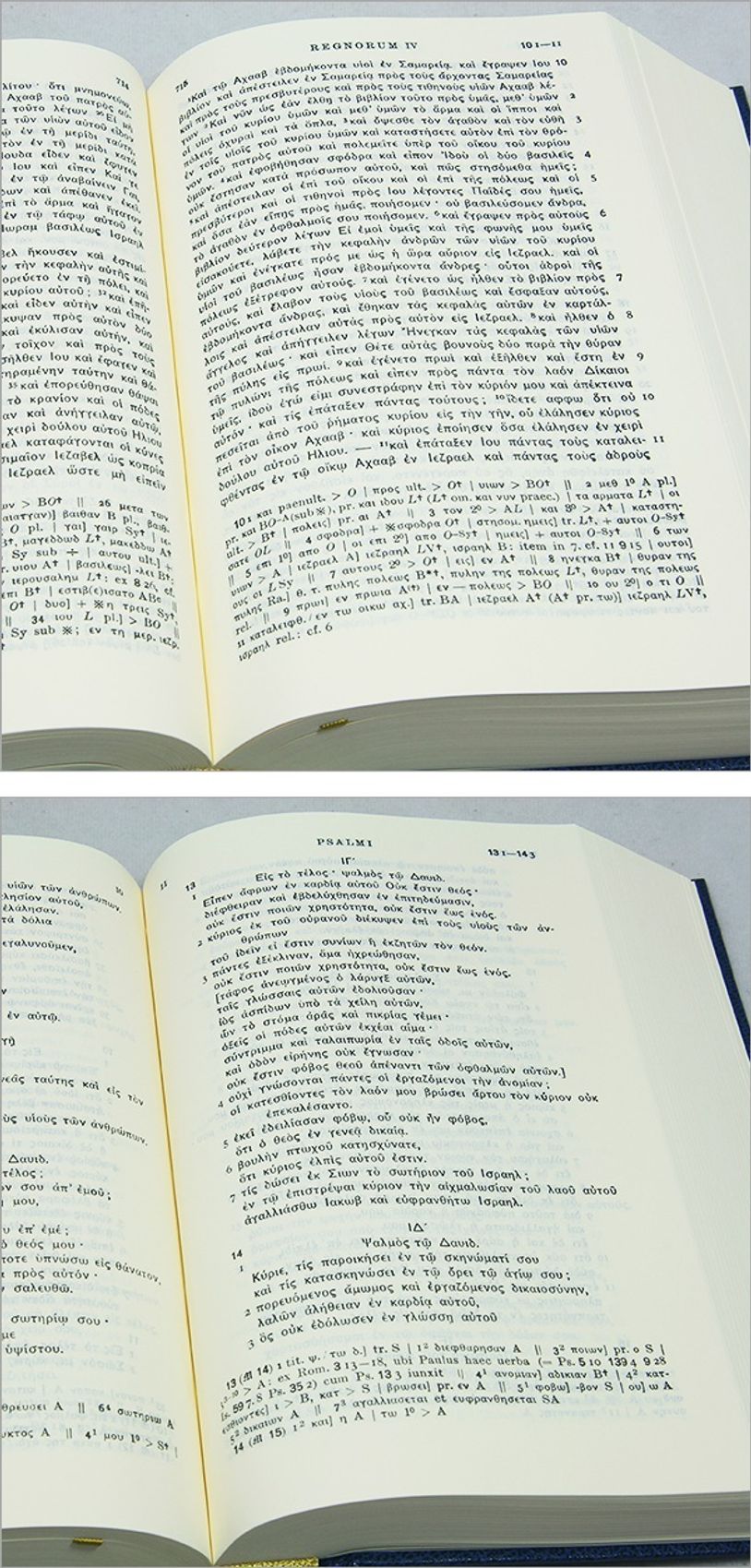 1935년 출간 이후, 알프레드 랄프스(Alfred Rahlfs)의 칠십인역 판본은 전 세계 칠십인역 연구의 기본 텍스트이자 신학 및 문헌학 연구에 필수불가결한 도구였습니다. 로베르트 한하르트(Robert Hanhart)가 개정하고 업데이트한 제2판은 2006년에 출간되었으며, 그리스어 구약성경의 완전한 텍스트, 본문 비평 장치, 그리고 독일어, 영어, 라틴어, 현대 그리스어로 된 서문을 포함하고 있습니다.