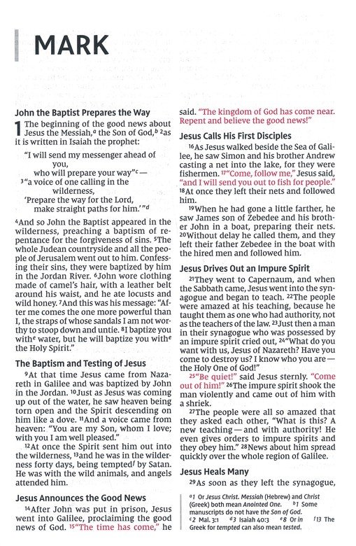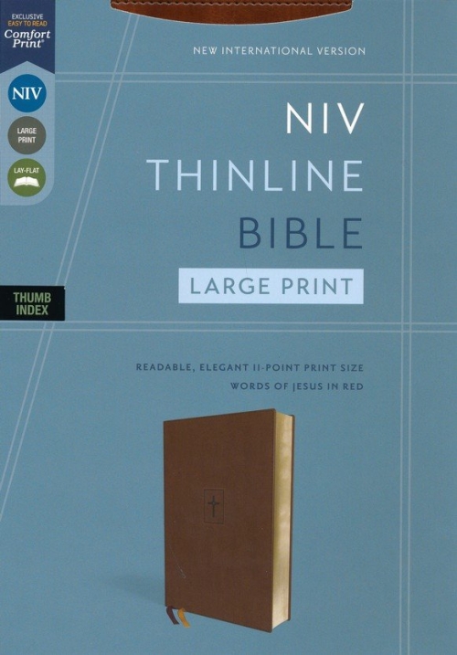 The NIV Large Print Thinline Bible encourages you to take God's Word into your life, both with it's comfortable size and it's even more comfortable text size on the page. Ease into the biblical stories with a typeface that has been developed intentionally to be easy on your eyes.