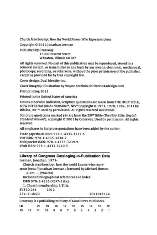 Jonathan Leeman addresses these issues with a straightforward explanation of what church membership is and why it's important. Giving the local church its proper due, Leeman has built a compelling case for committing to the local body.
