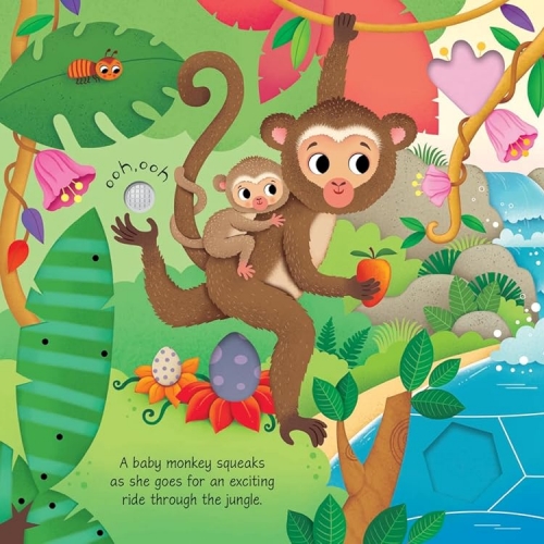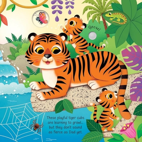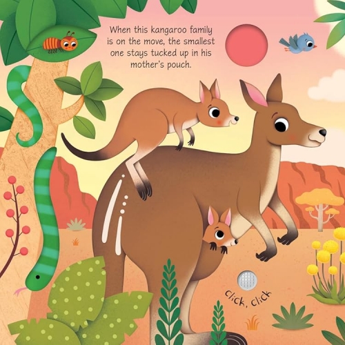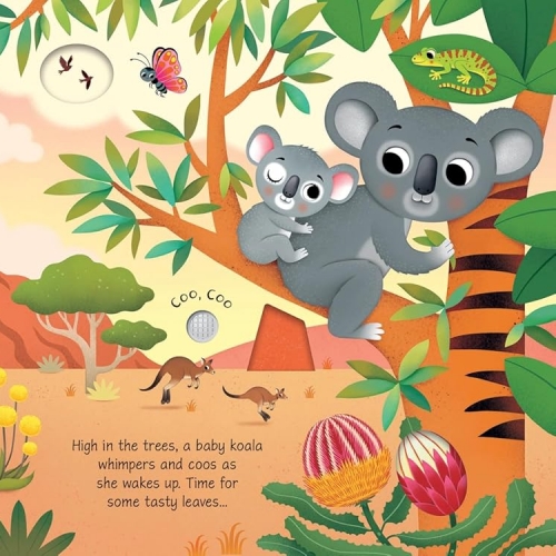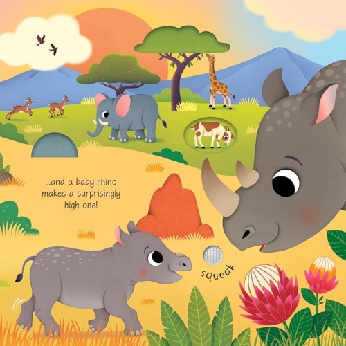 Baby Animal Sounds by Sam Taplin and Federica Iossa, From penguin chicks and seal pups to tiger cubs and baby rhinos, there are all kinds of little animals making cute sounds in this charming book. With ten buttons on the pages to press, there's a visit to Australia to hear what noises baby kangaroos and koalas make, as well as a trip to the jungle to listen to a baby monkey, and a farm where a baby alpaca and donkey come to life.