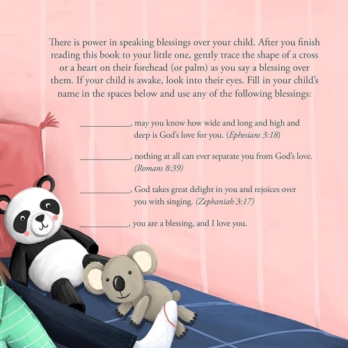 Filled with adorable jungle-themed animal illustrations and sweet, childlike blessings, this book encourages parents, grandparents, and other loved ones to speak words of blessing and reassurance over their children before they drift off to sleep.