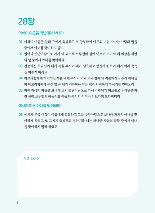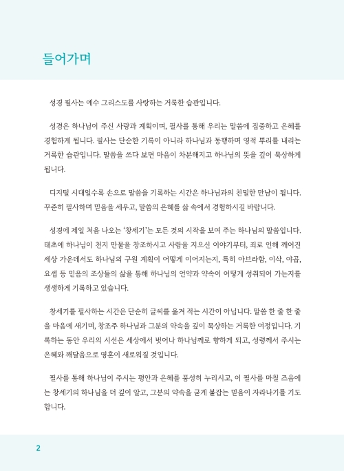 말씀을 천천히 음미하고 직접 써 보는 과정에서 하나님의 강력한 은혜와 임재를 경험하시길 바랍니다.
