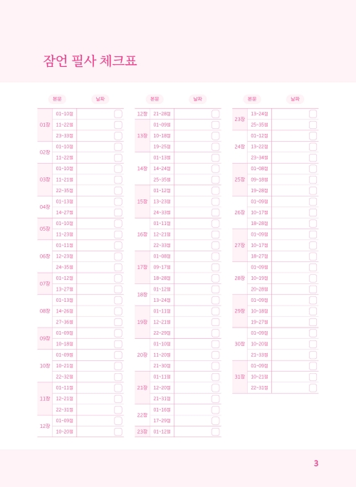 셋째, 말씀과 끝까지 동행할 수 있도록 ‘필사 체크표’ 수록