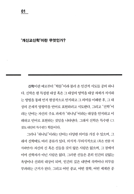 역시 대가다운 필치다. 바르트는 믿음의 지성을 강조하면서 신학함의 기쁨을 말한다. 말씀에 기초해 성령의 인도로 세상을 향하는 공동체 신학이, 부활하신 예수님을 믿음으로 온갖 위기를 극복하고 세상의 소망이 되어야 함을 쉬운 언어로 술술 말한다. 이 책을 읽다 보면, 독자들은 처음에는 긴장하다가도 어느새 놀랍게도 그의 삶과 신학이 편하게 다가옴을 느낄 것이다. 그의 신학을 따르든 그렇지 않든, 이 책 『개신교신학 입문』은 신학함을 체득할 수 있도록 안내하는 좋은 입문서다. 번역도 물 흐르듯 매끄럽다.
