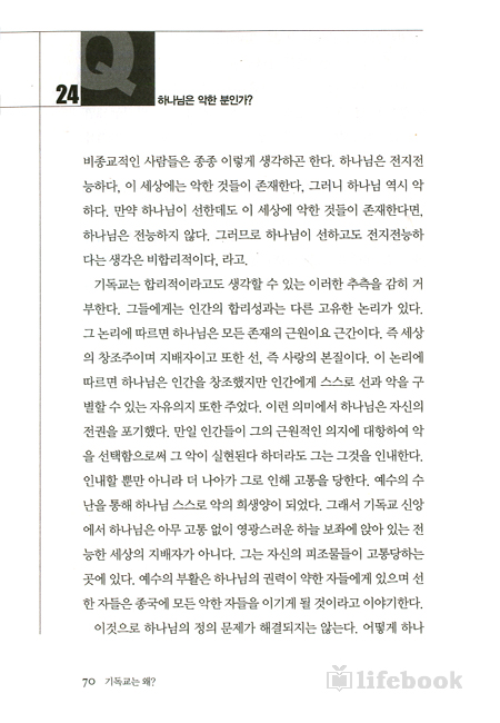 반면 가톨릭은 왜 하나밖에 없는가? 현대사회는 무엇을 위해 기독교를 필요로 하는가? 현대인은 무엇 때문에 교회에 드나드는가?