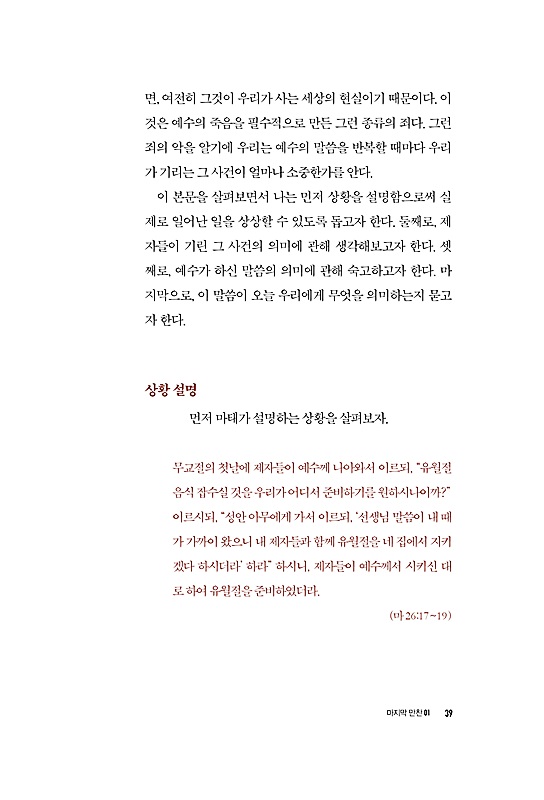 노련한 성서학자의 전문 지식과 원숙한 목회자의 지혜를 겸비한 크리스토퍼 라이트가 마지막 만찬에서 십자가에 이르는 예수의 여정으로 우리를 안내한다.
