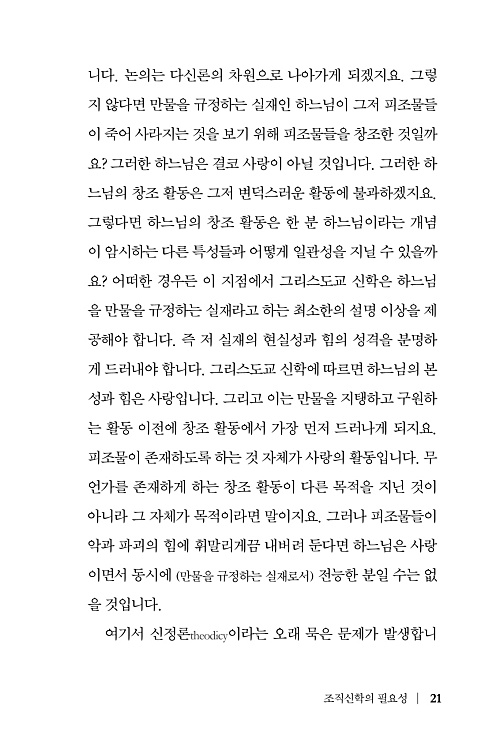20세기 후반을 대표하는 개신교 신학자 볼프하르트 판넨베르크가 오늘날 신학의 필요성과 조직신학의 주요 문제들, 전개 방향을 해설한 책. 그의 대표작이자 20세기 가장 탁월한 조직신학 저작으로 꼽히는 『조직신학』 3부작을 저술하는 와중에 미국 웨스턴 신학교에서 강연한 내용을 바탕으로 쓰인 책으로 판넨베르크 신학의 특징을 엿볼 수 있는 가장 좋은 저작으로 꼽힌다.