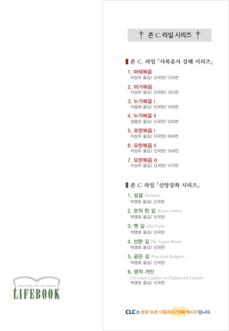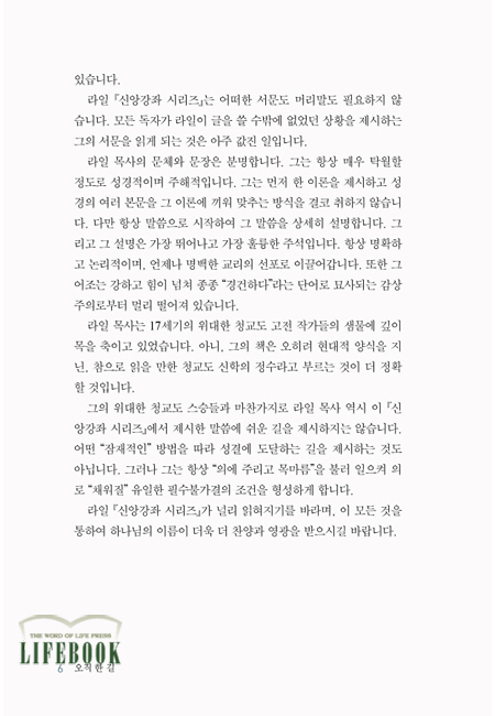 라일 목사의 저서를 읽어본 사람들은 누구나 그의 위대한 저술들을 새롭게 묶어 내놓은 라일 『신앙강좌 시리즈』에 깊은 감사