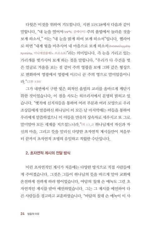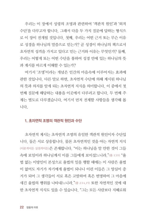 이 책은 종교개혁 전통에서‘성경의 권위’와‘구원 신앙의 초자연성’을 연결지어