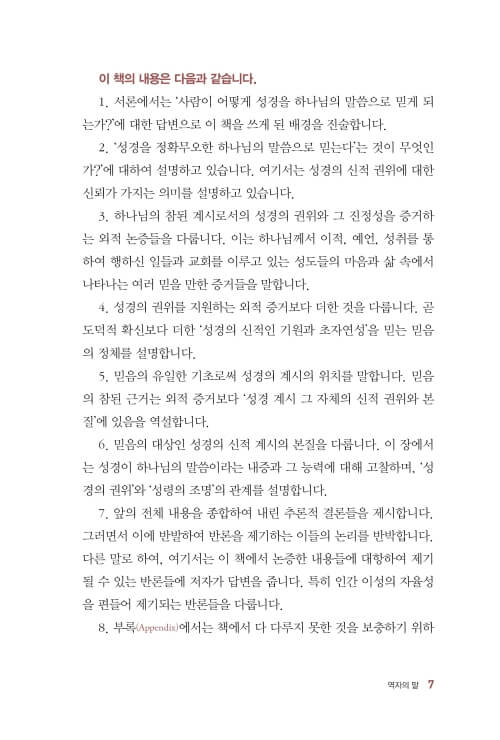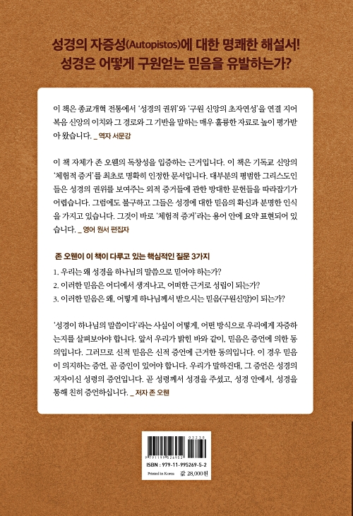 이 책은 우리가 성경을 믿는 '최종적인 근거(Formal Reason)'가 무엇인지에 대해 탐구합니다.