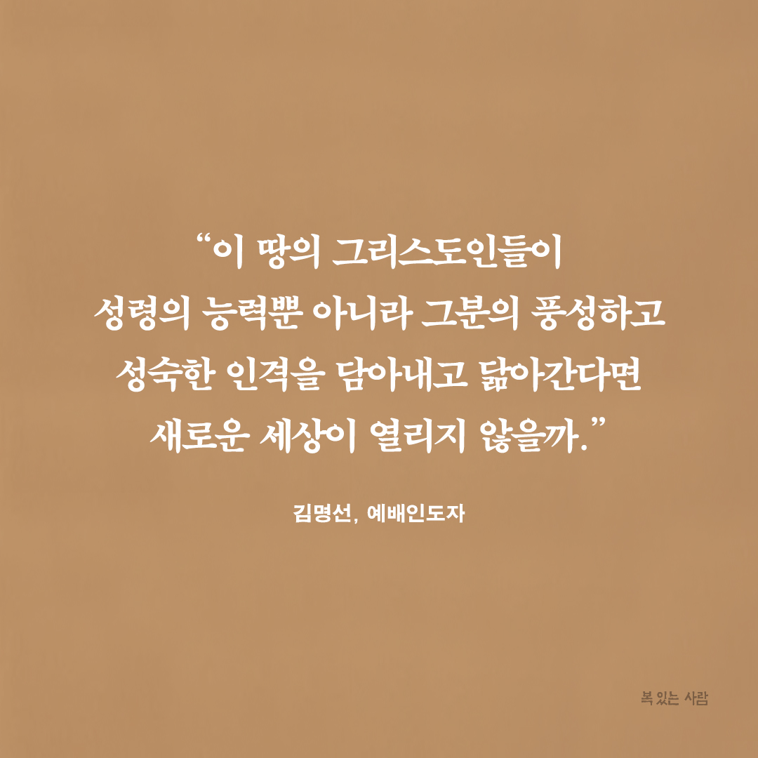 앞서 출간된 저자의 기도에 관한 책이 워낙 좋았기 때문에 이번 책도 큰 기대를 품고 읽었다. 감사하게도 기대 이상이었고, 주제 역시 내가 잘 모르는 영역이기에 더욱 반가웠다. 경배와 찬양을 받아 마땅하신 하나님, 곧 성령 하나님에 관한 주제이니 말이다. 장로교 목사는 왜 그런지 오순절 목사보다 성령님에 대해 덜 이야기하곤 한다. 그분에 대해 나는 신학책에서 많이 배웠지만, 왠지 자주 말하면 안 될 것 같은 압박감에 시달리곤 했다. 저자는 성령 하나님에 대한 교리를 충실히 지키면서도 신선하게 재해석하고, 무엇보다 그것을 우리의 삶 속에 깊이 적용하도록 이끈다. 성령에 관한 한, 성경해석과 교리와 경험과 간증이 이처럼 균형 있게 어우러진 책이 있었던가. 특히 11장에서 고난 가운데 역사하시는 성령님에 대한 감동적인 묘사는 깊은 울림을 주었다. 이 책을 읽는 동안 낯설지만 친숙한 바로 그분을 기뻐하게 될 것이다.