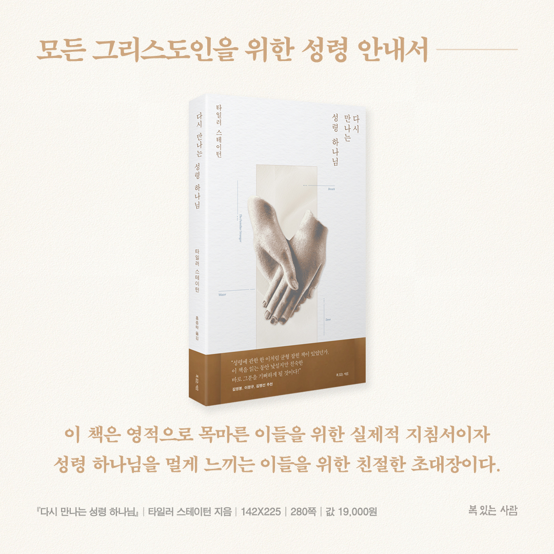 믿음의 여정에는 계속해서 생각하고 새롭게 써 내려가야 할 주제들이 있다. 성령론은 그중 하나다. 예수님께 충실하고자 하는 모든 세대에게는 성령의 인격과 사역을 더 깊이 이해하는 일이 필요하다. 다행히 타일러 스테이턴은 이 책에서 큰 선물을 주었다. 그는 절실함을 품고 글을 쓴다. 그리고 성령의 임재가 얼마나 가까이 있는지를 누구나 이해할 수 있는 언어로 풀어낸다. 이 책의 가장 큰 미덕은 추상적인 신학을 넘어선다는 점이다. 성령과 깊이 씨름해 온 사람이 쓴 글이라서 그 여정에 함께한 이들을 이끌어 온 경험이 느껴진다. 이 책을 읽어 보라. 당신의 삶에도, 세상에도 좋은 일이 일어날 것이다.