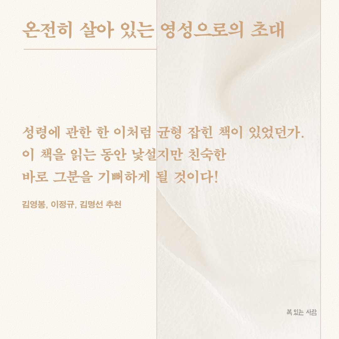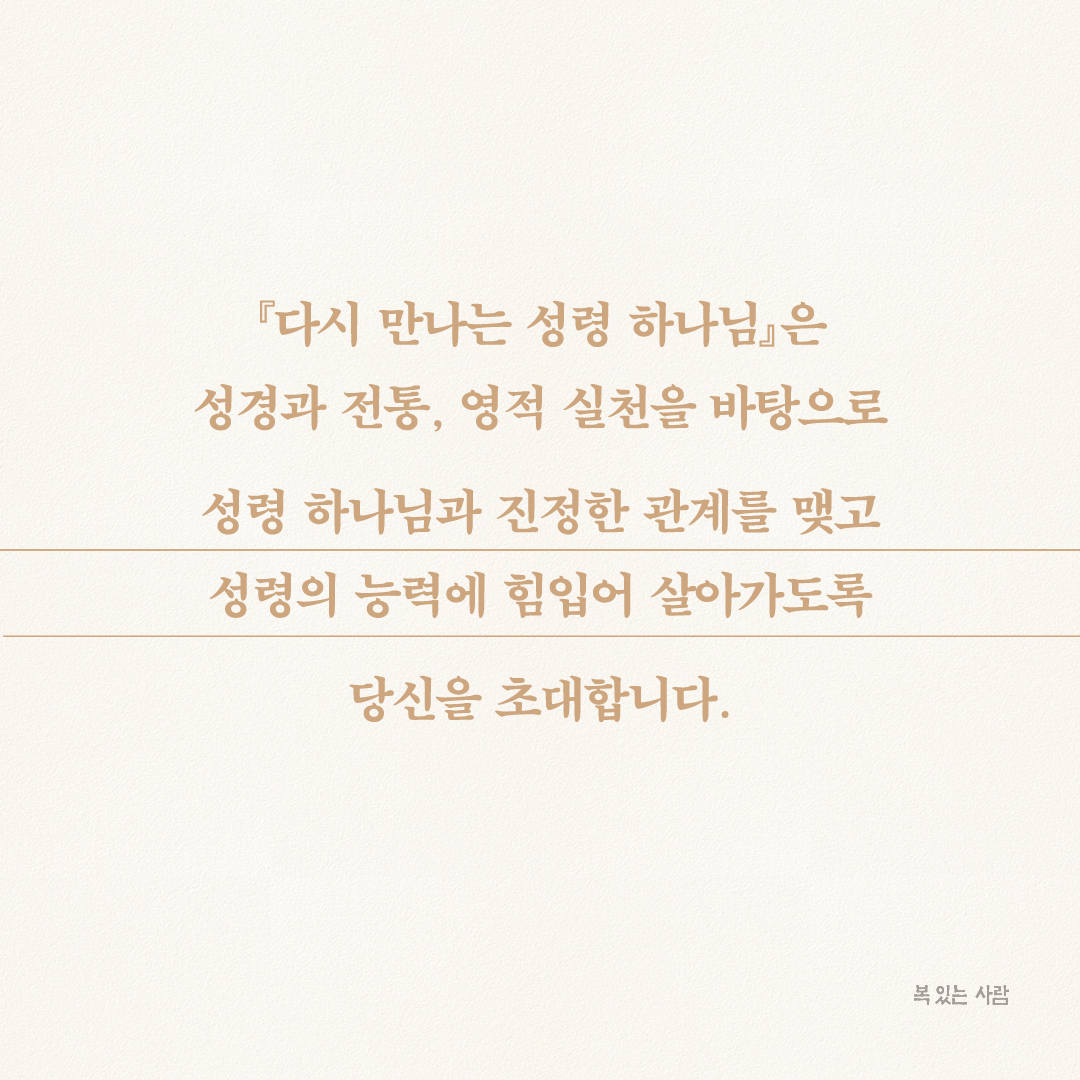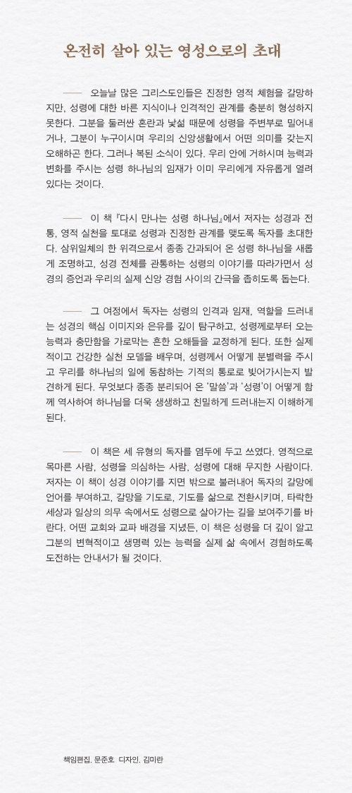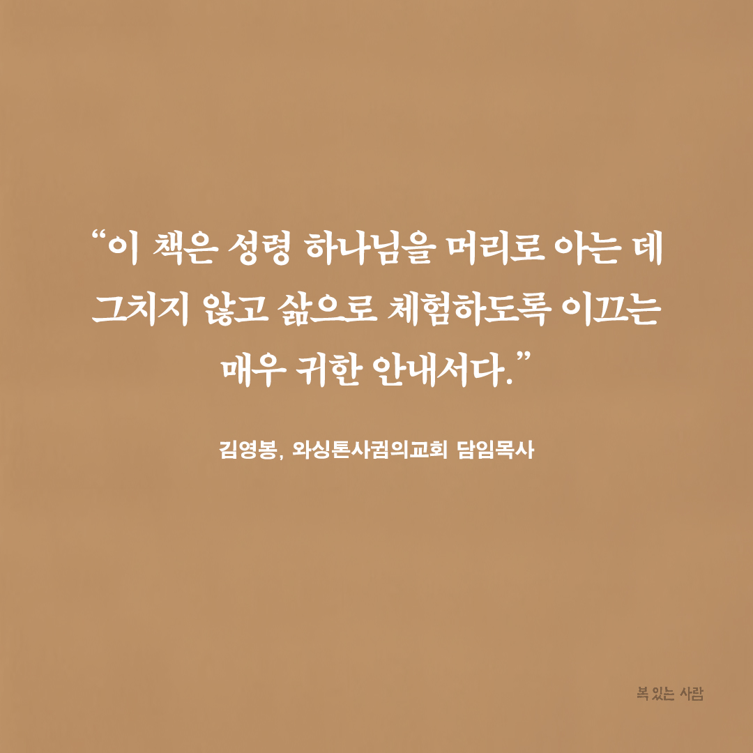 성령 하나님을 멀게 느끼는 이들을 위한 친절한 초대장이다.”