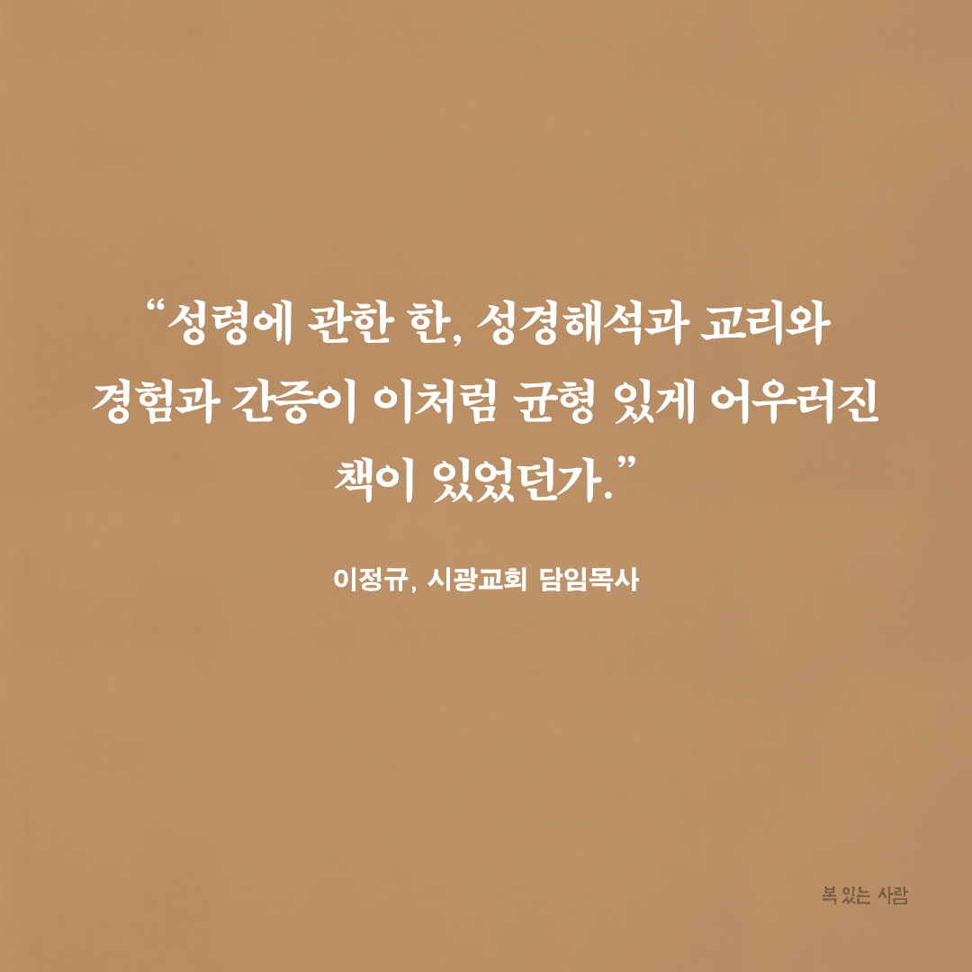 “성령에 관한 한 이처럼 균형 잡힌 책이 있었던가.