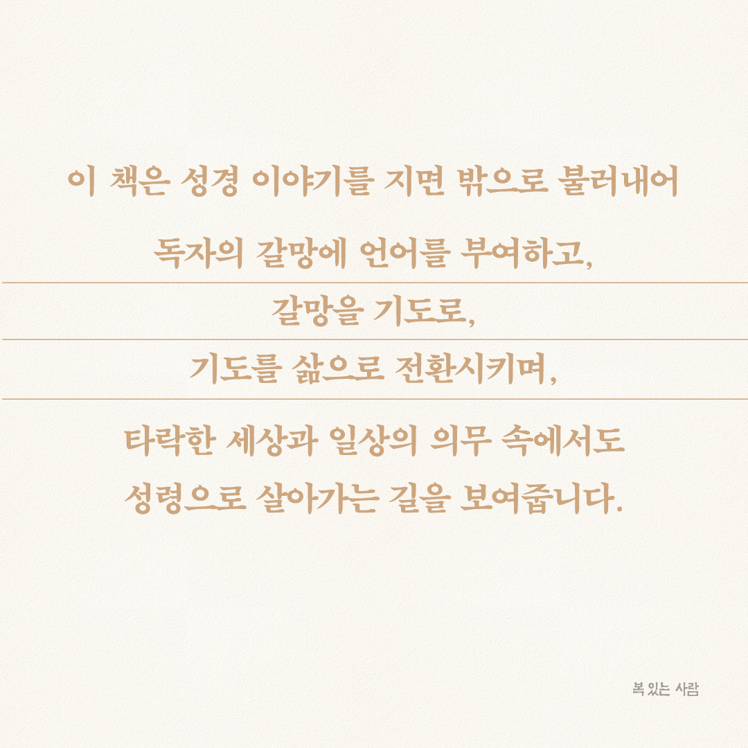 “이 책은 영적으로 목마른 이들을 위한 실제적 지침서이자