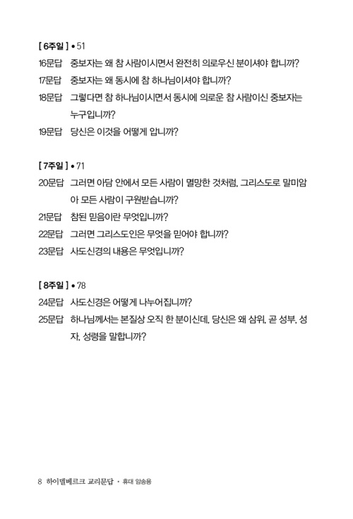 하이델베르크 교리문답은 문답 형식으로 되어 있기 때문에 질문과 답을 그냥 읽기만 해도 좋습니다.